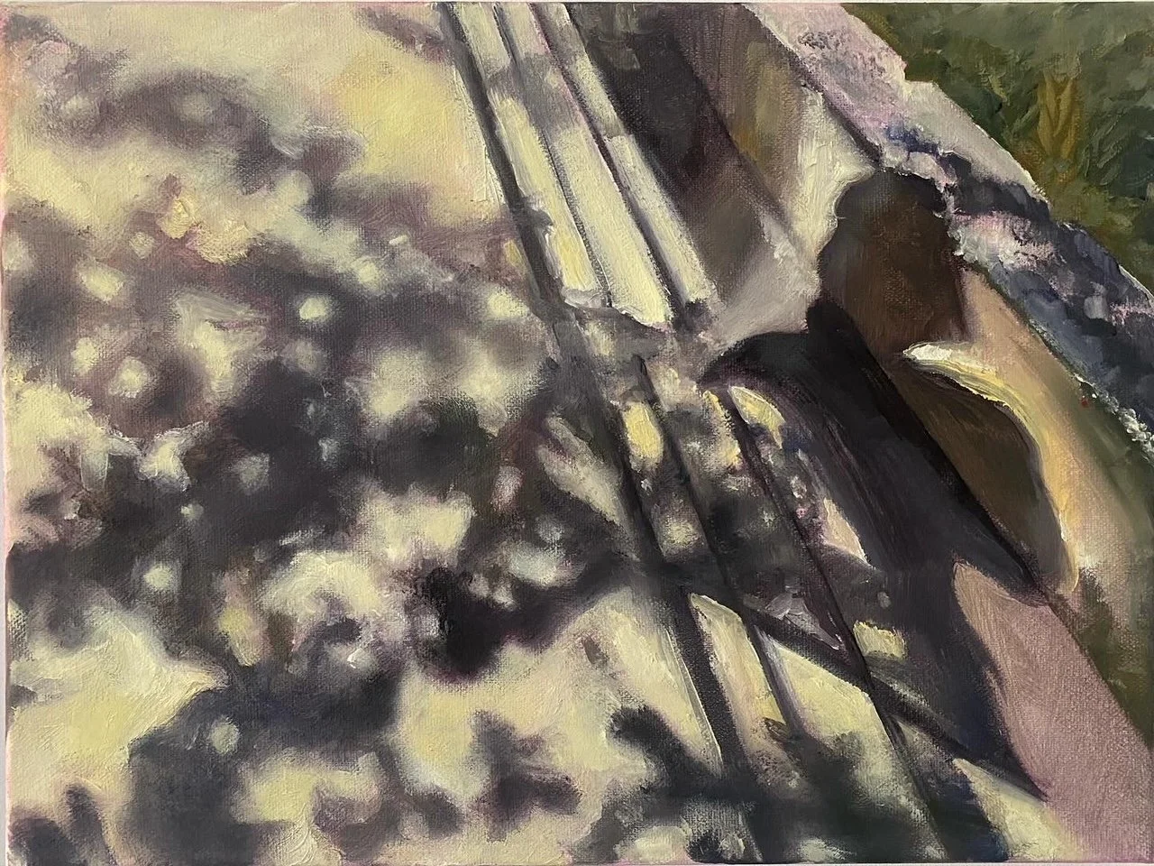 From late August 2025 to end of November 2025, I participated in an artist’s residency in partnership with Atelier Plus, a Cluj-Napoca-based art group in Romania. During those three months I painted, formed meaningful relationships, and taught painting to 24 children in my neighborhood. It is a time in my life I will never forget. My focus was on the mutual influence of the identity of a place and a person’s identity; I believe my body and the places my body occupies are deeply intertwined. Similarly, my shadow lies flat upon the ground, flowing with the bumps and valleys, but provides evidence of a 3-dimensional being standing just above. These works are my attempt to record my physical presence in Cluj, and are a faithful response to the call of the Lord to be and create in Romania.